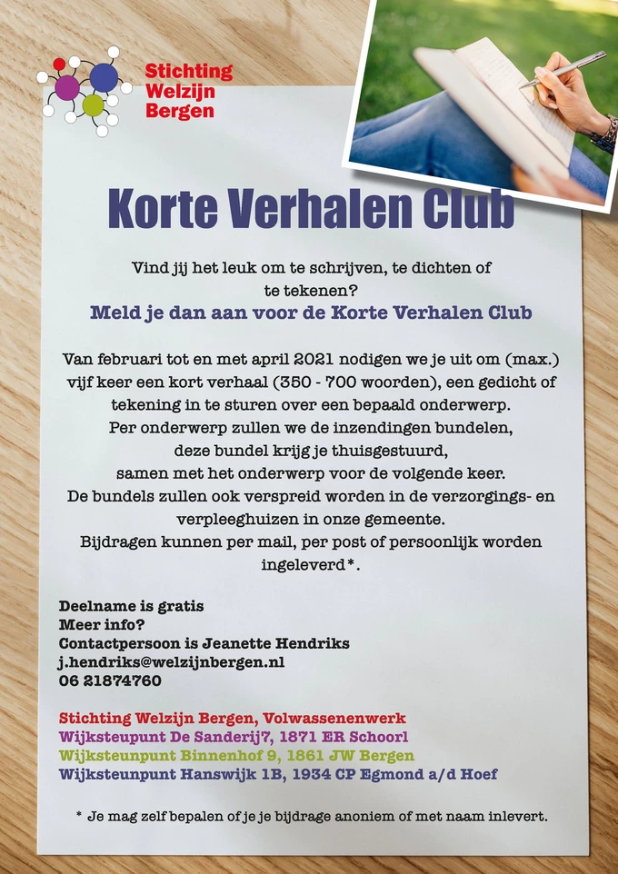 Welzijn Bergen heeft de afgelopen maanden 8 boekjes met verhalen binnen een thema samengesteld.