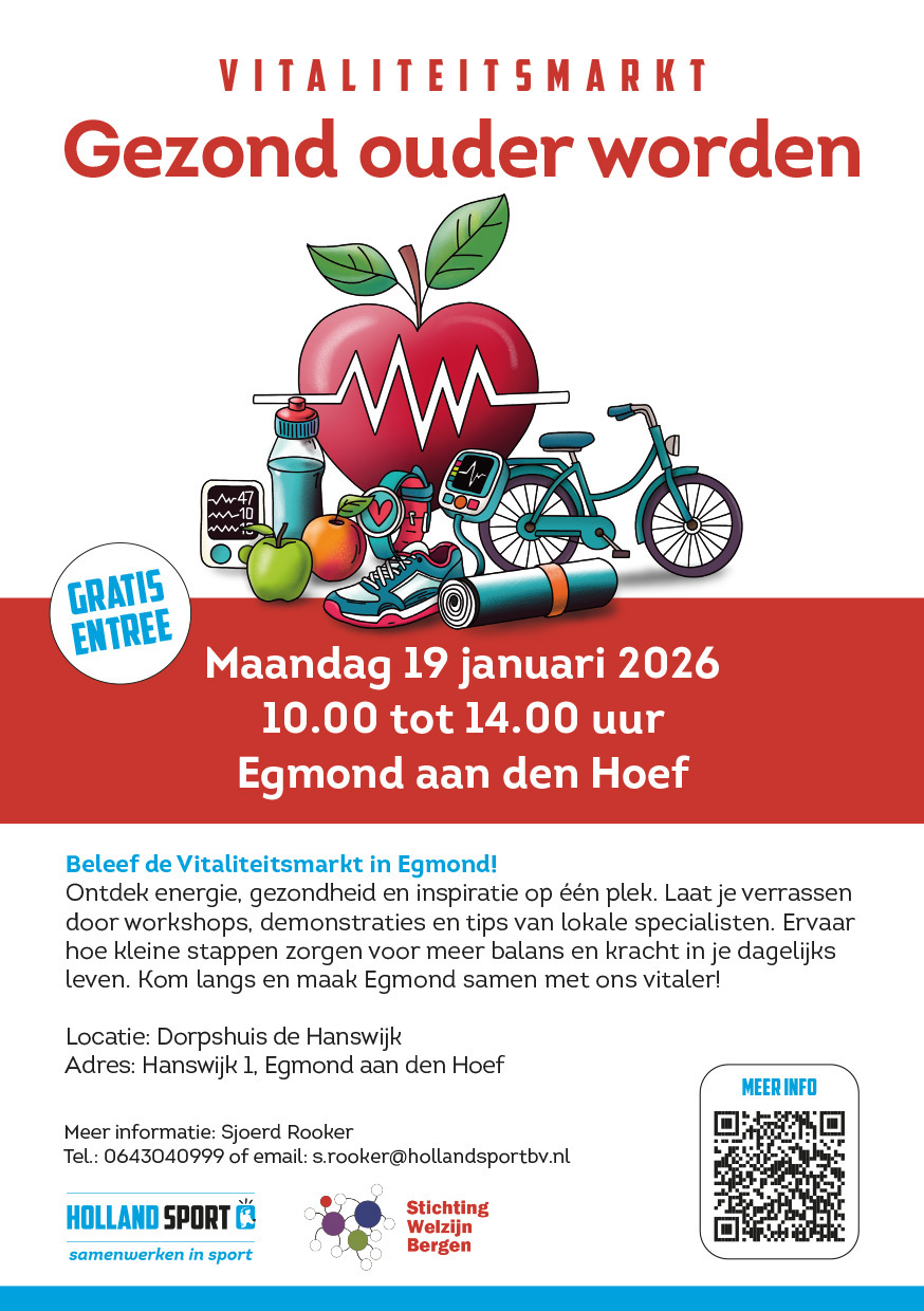 Op maandag 19 januari vindt de Vitaliteitsmarkt plaats in 't Hanswijk in Egmond aan den Hoef.